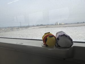 仙台駅到着。雪が…
