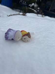 小走りで駅まで戻り、ちょっと時間に余裕があったので向かいの公園で雪遊び。